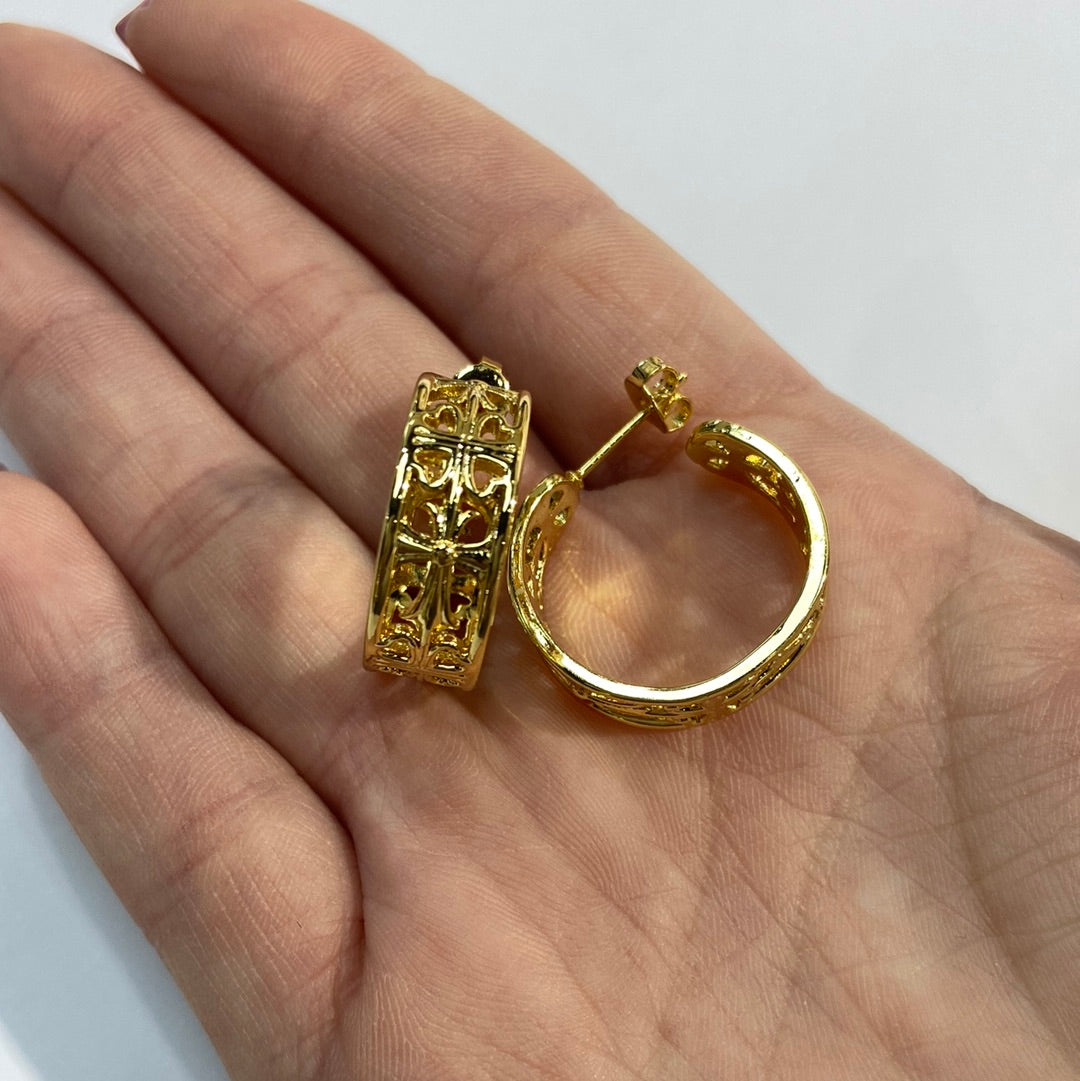Par de aros con forma de corazón enchapados en Oro 18 K.• TAMAÑO: 17 x 19 mm.• ESPESOR: 2 mm.Precio regular $4.500Precio en oferta $4.500 Precio regularPrecio unitario / por -