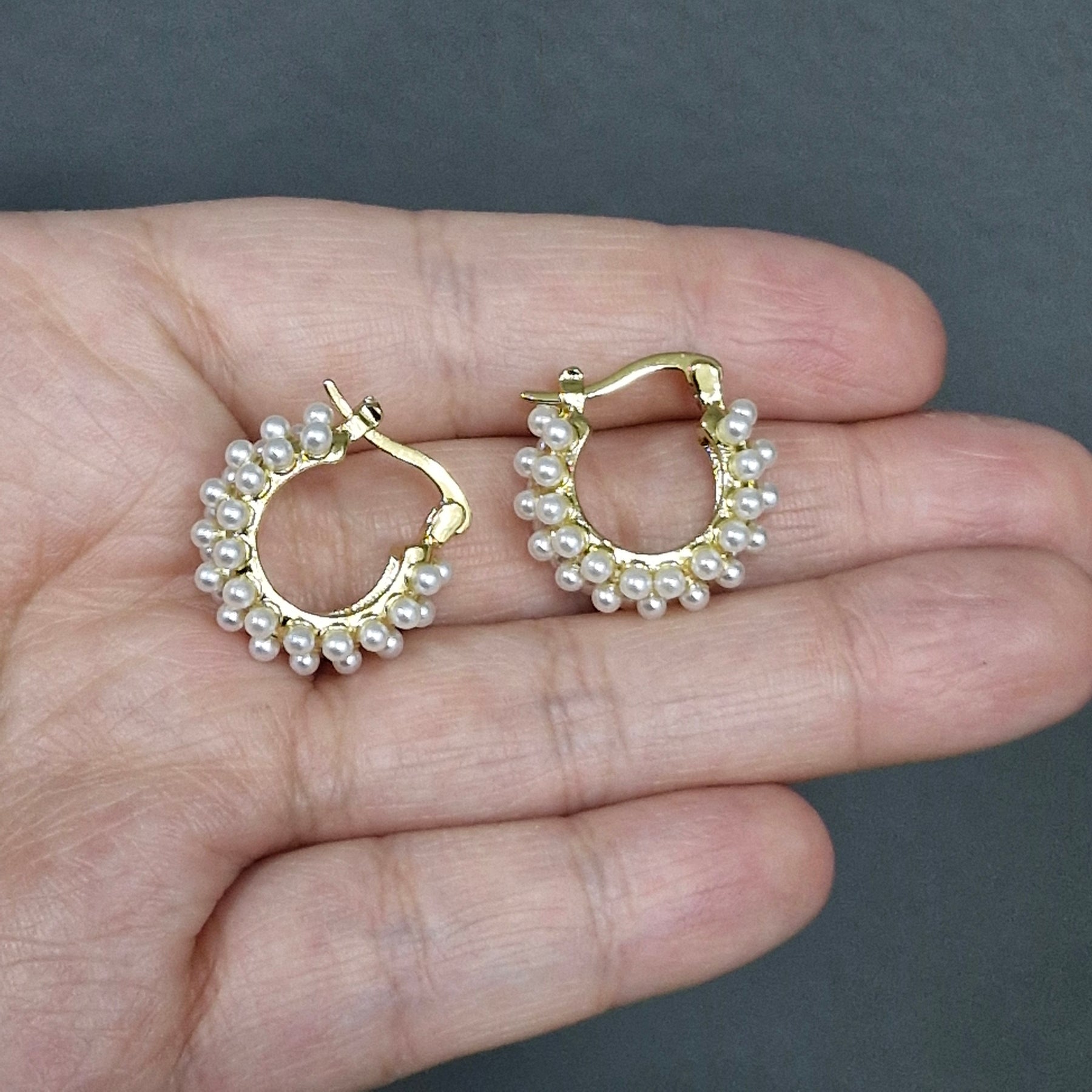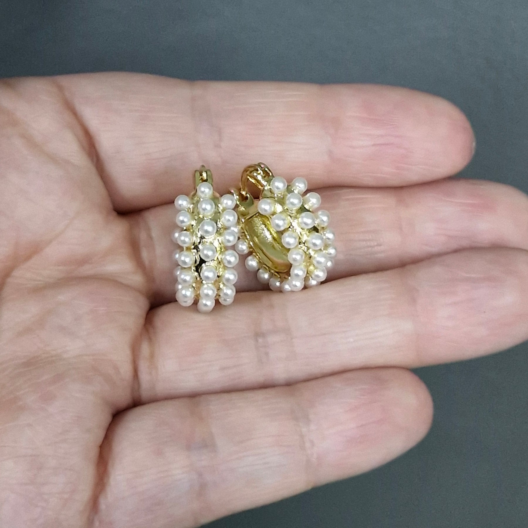• Argollas enchapadas en oro con perlas
