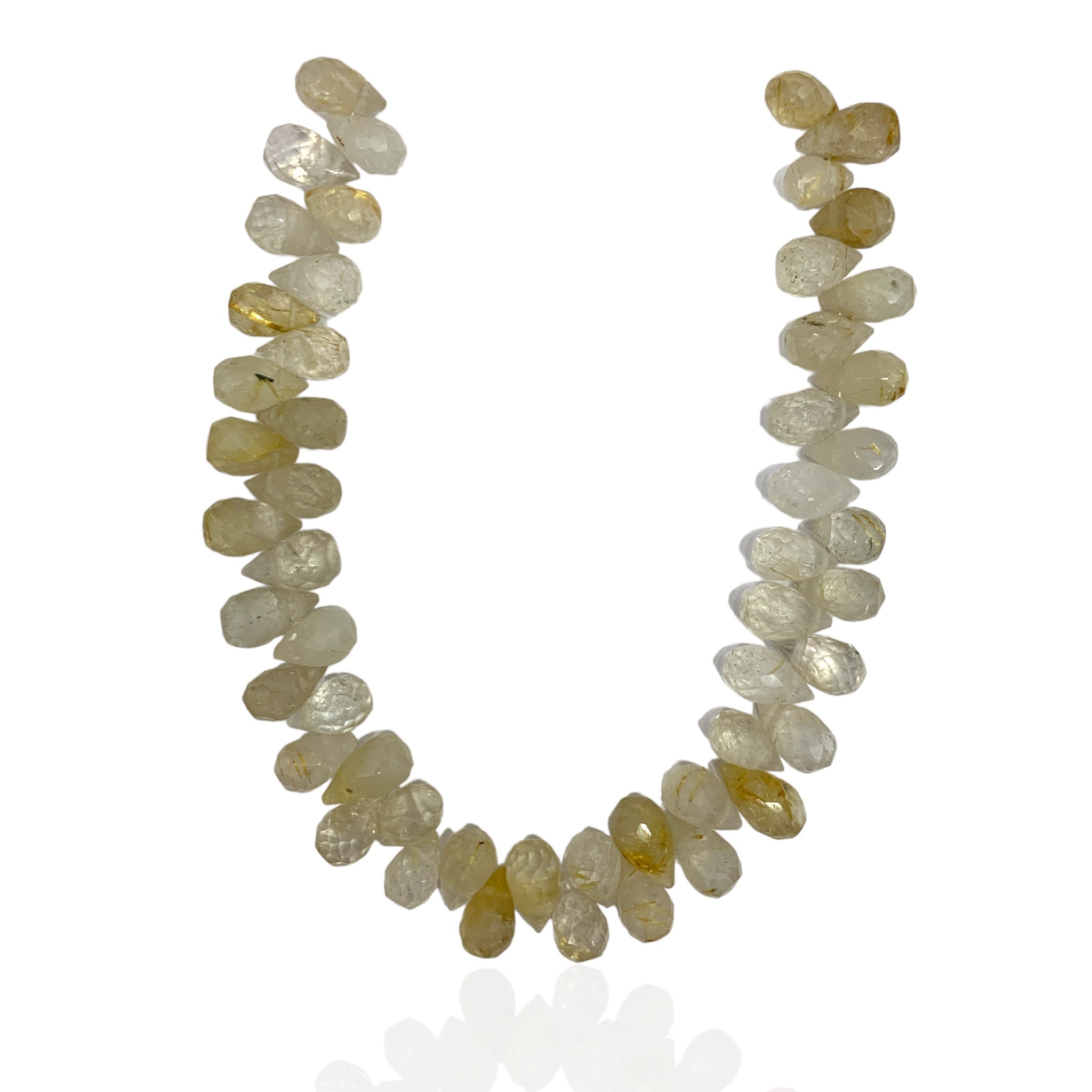 Tira de piedras naturales. Cuarzo Rutilado. • TAMAÑO: 9.5 x 6.3 mm.• CANTIDAD: 46 unidades aproximadamente.Precio regular $38.000Precio en oferta $38.000 Precio regularPrecio unitario / por -