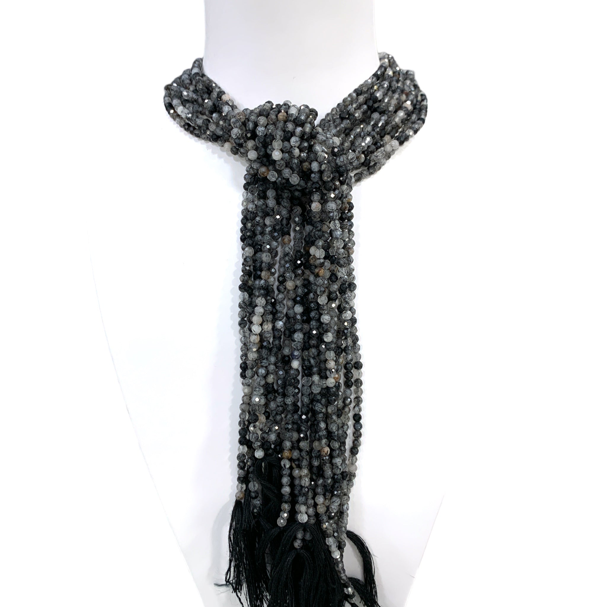 Tira de piedras naturales. Cuarzo Rutilo Negro. • TAMAÑO: 3.3 mm.• CANTIDAD: 100 unidades aproximadamente.Precio regular $5.500Precio en oferta $5.500 Precio regularPrecio unitario / por -