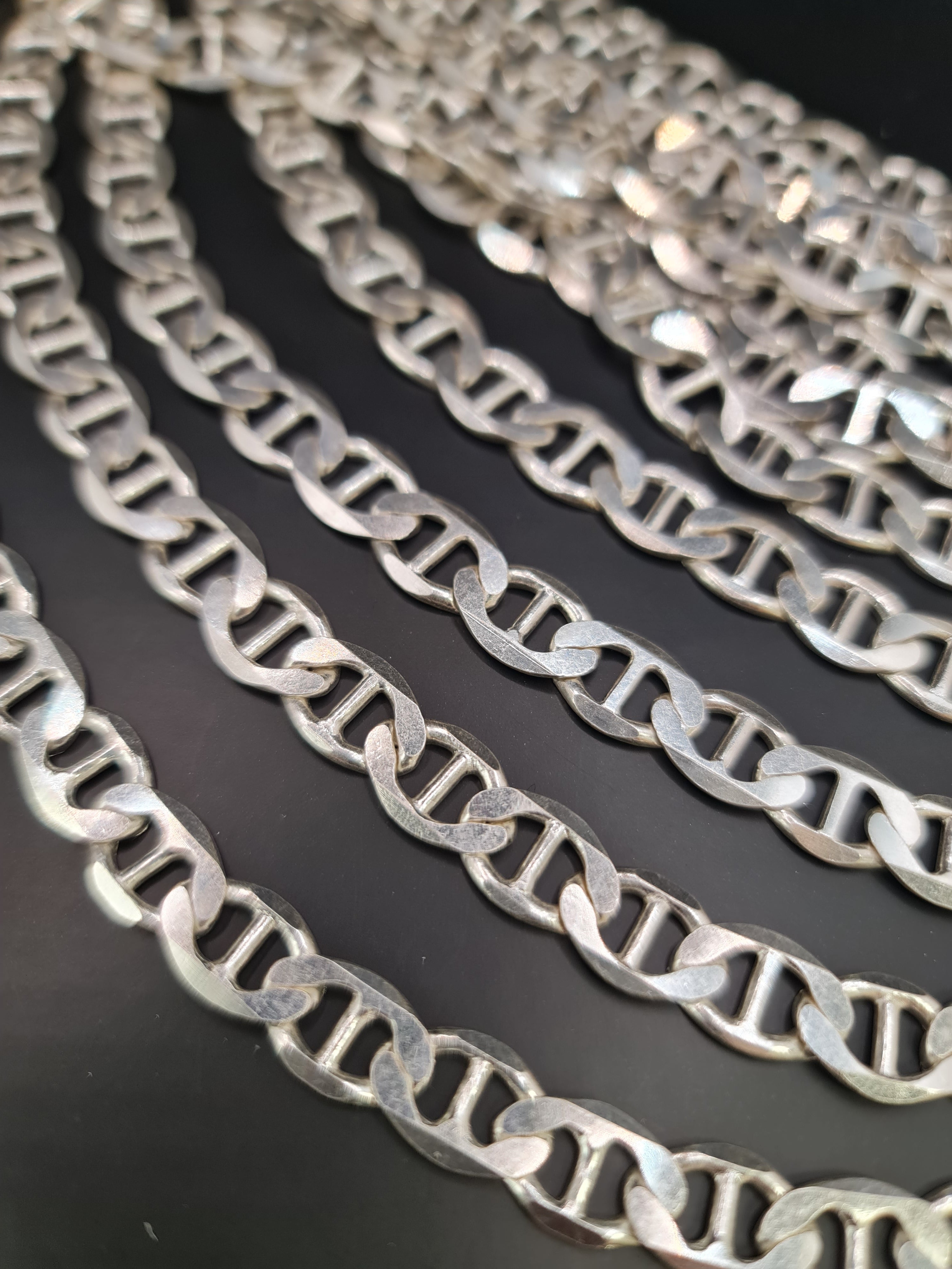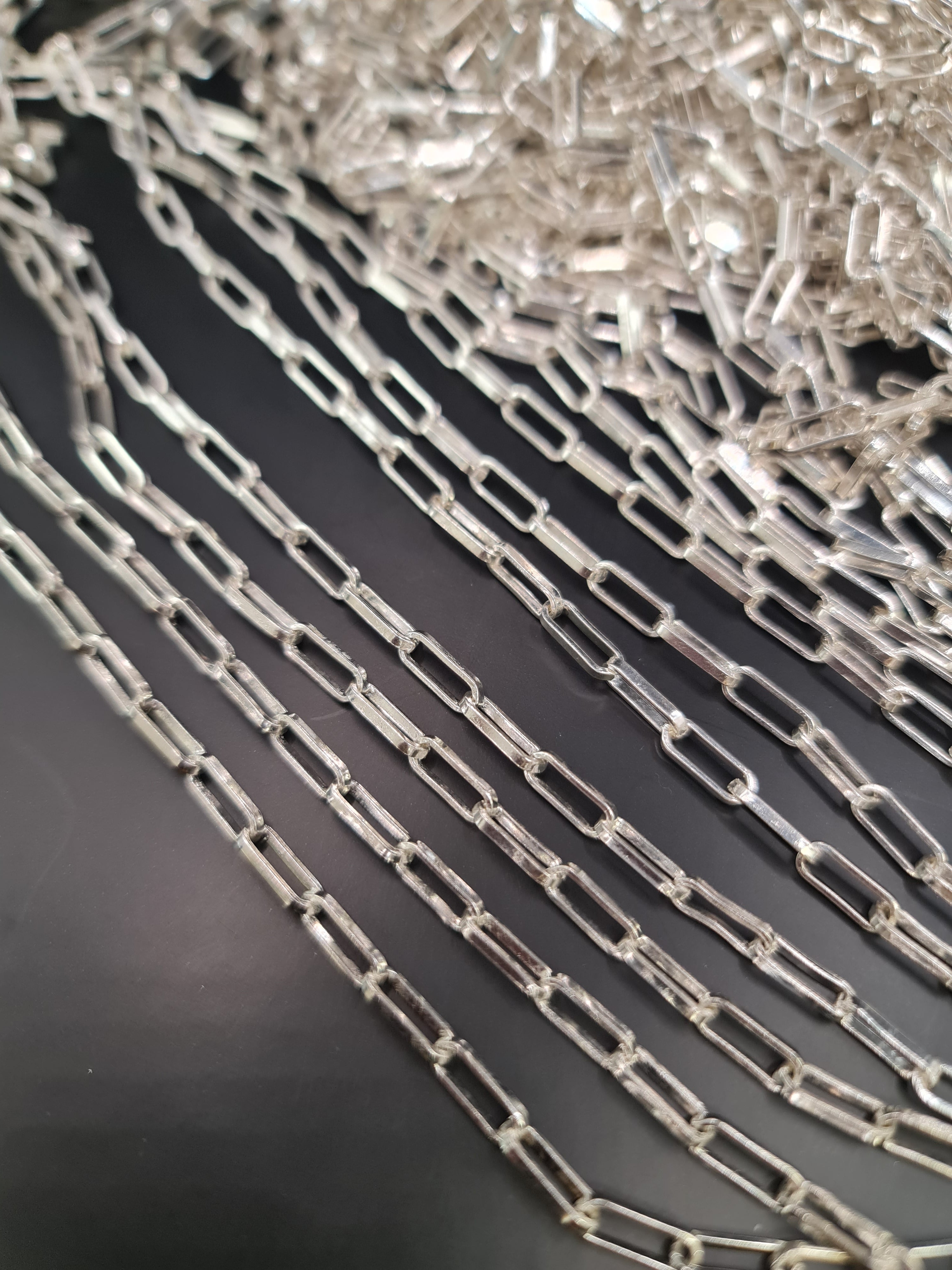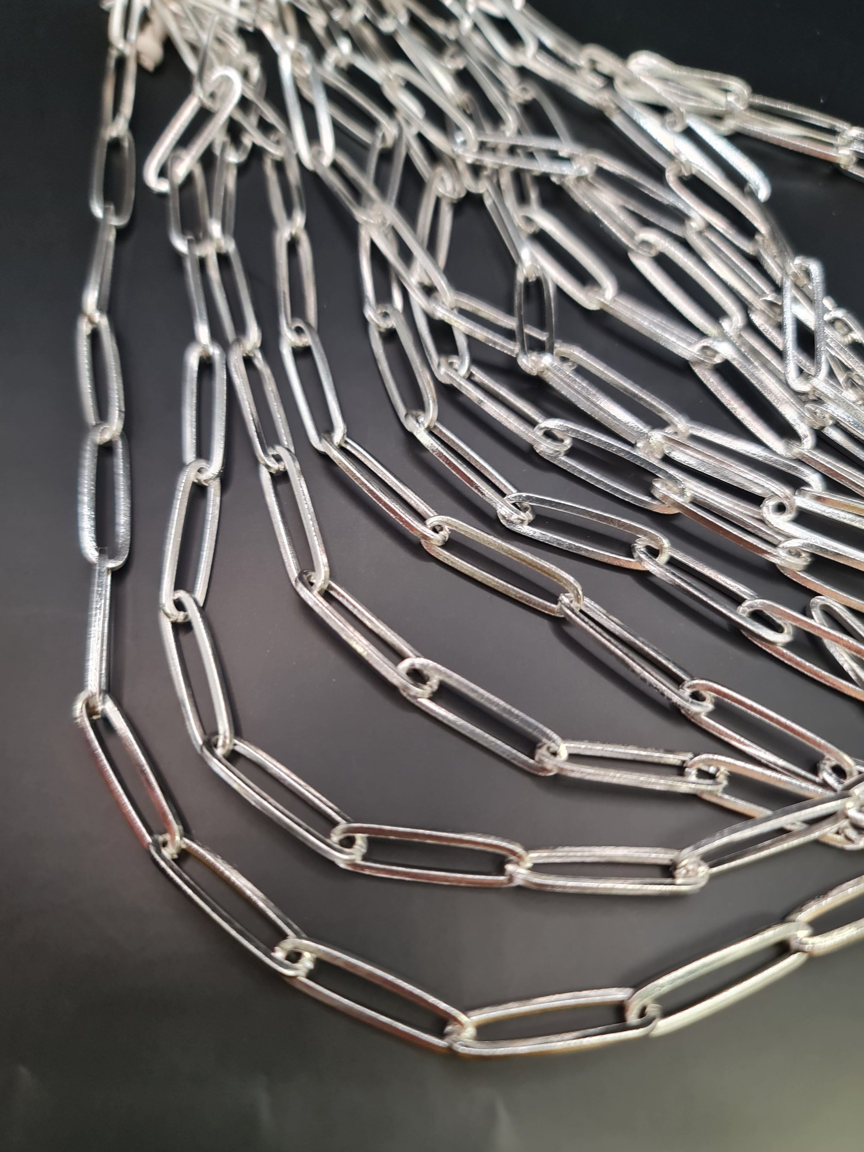 Eslabon plateado matizado. Ventas solo por metros de cadenas.Precio regular $6.800Precio en oferta $6.800 Precio regularPrecio unitario / por -