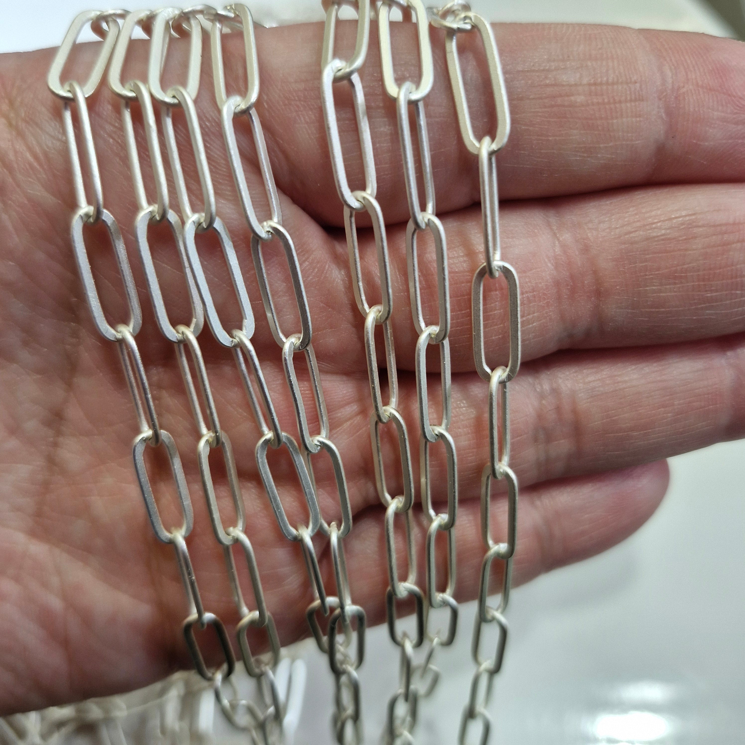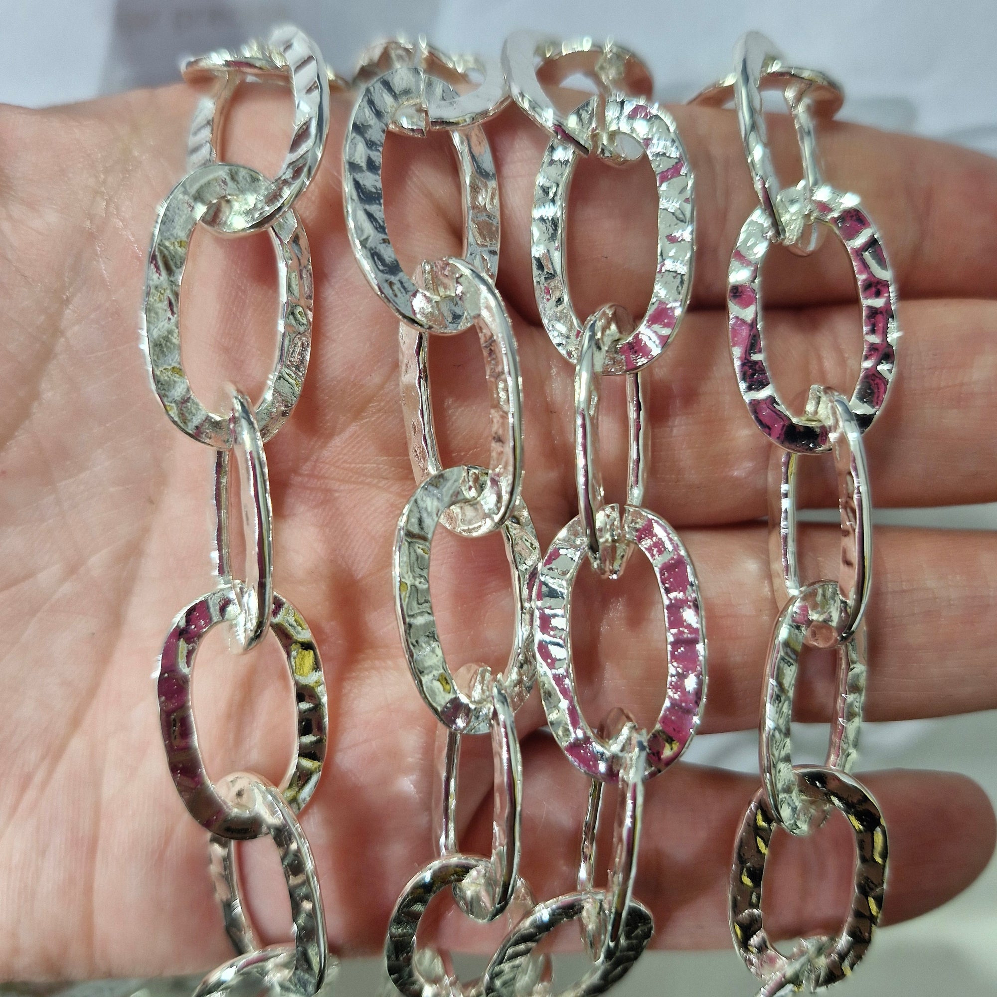Cadena Plateada Eslabon Ovalado Martillado