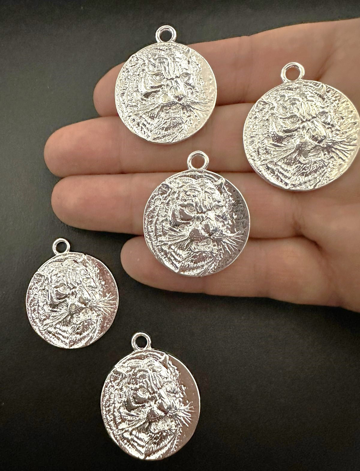 MEDALLA CARA DE TIGRE PLATEADO